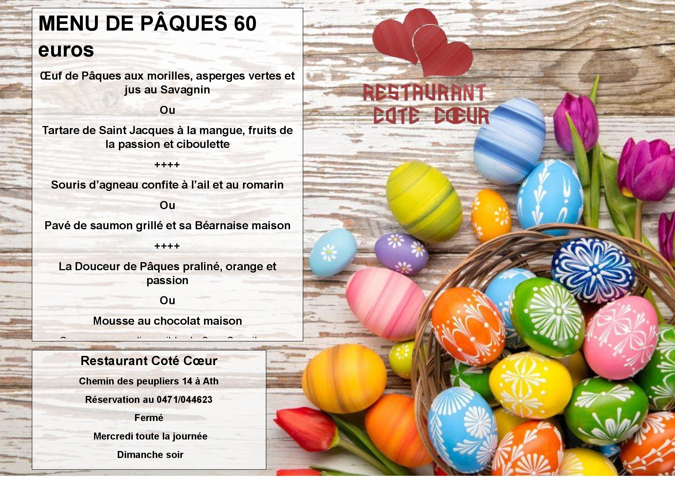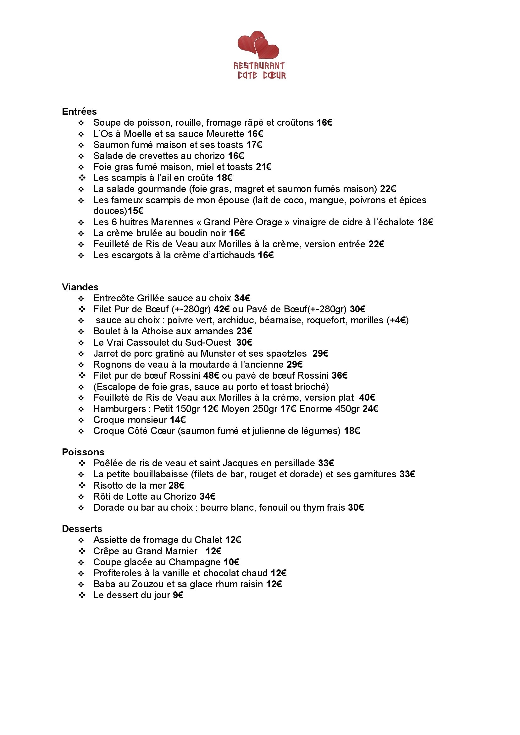 Dirigé par un chef cuisinier riche de plus de 30 ans d’expérience en gastronomie, le Restaurant Côté Cœur vous amène à la découverte de toutes ses spécialités culinaires, inspirées d’un savoir-faire traditionnel et d’un mélange de cuisine exotique. Cet établissement vous propose des menus élaborés à partir de produits frais, issus du circuit de distribution local.